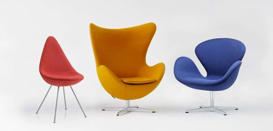Fotelje Drop, Egg i Swan dizajnirane su za potrebe opremanja SAS Royal hotela u Kopenhagenu 1958. godine. Kasnije su postigle međunarodni uspeh i prodaju.