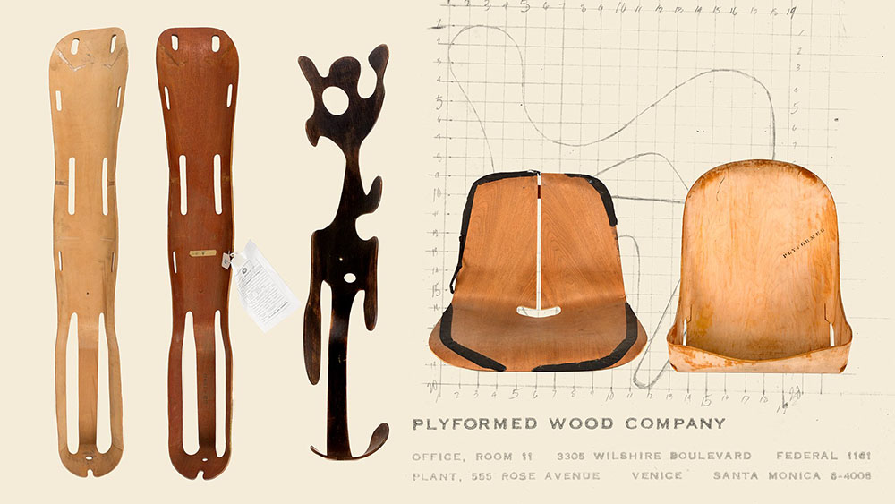 Prvi proizvod koji je proistekao iz njihove radionice, bilo je medicinsko pomagalo za imobilizaciju povređenih nogu. Ovaj predlog potekao je od vojnog doktora Vendela Skota, Čarlsovog dugogodišnjeg prijatelja pošto su se SAD posle uključivanja u operacije Drugog svetskog rata suočile sa velikim brojem ranjenika, a postojeće proteze od metala imale su puno nedostataka. Prvobitna narudžbina od 5 000 komada 1942. godine je do kraja rata stigla do 150 000, te je ovo postao prvi serijski proizvod bračnog para Ims. Za ove potrebe osnovana je kompanija Plyformed Wood Company, koja je kasnije prerasla u novu i veću pod nazivom Molded Plywood Division. Proteza je dizajnirana sa puno ograničenja i njen kvalitet je proizilazio upravo iz funkcionalnih zahteva. Izrađena od drveta da bi bila lakša i komfornija za korišćenje od svojih metalnih prethodnika koje su često zbog pritiska zaustavljale cirkulaciju indirektno izazivajući gangrenu, ujedno je bila i pristupačnija za izradu u ratnim vremenima kada je metal bio potrebniji za izradu oružja. S obzirom na okolnosti, proizvodnja je morala da se razvija veoma brzo i uskoro je nivo stečenog znanja bio toliko velik da se ceo proces uzdigao na novi nivo, što je omogućilo izradu otpresaka složenijih oblika.