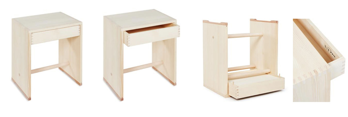 Model sa fiokom izrađen od ploča masiva smrče, koje su sa donje strane ojačane rubnim lajsnama od drveta bukve.