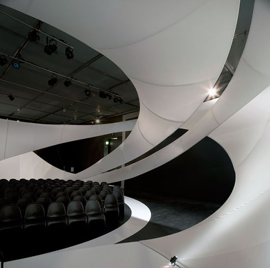 Pantonove stolice u modernom ambijentu Dvorane kamerne muzike u umetničkoj galeriji u Mančesteru autora Zahe Hadid. Instalacija je postavljena za potrebe održavanja Internacionalnog festivala u Mančesteru 2009. godine.