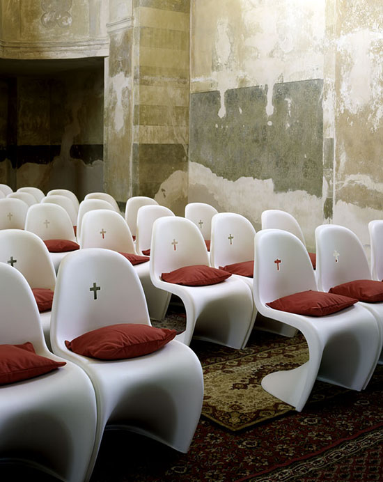 Namenski izrađena serija stolica za redizajn enterijera Crkve Svetog Vartolomeja u selu Hodovice, Istočna Češka (2007).