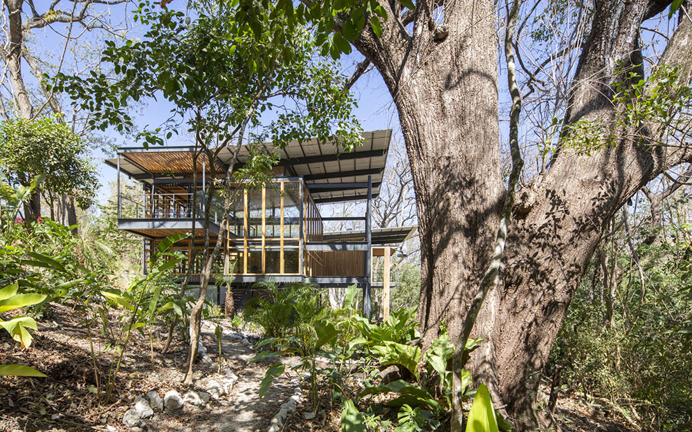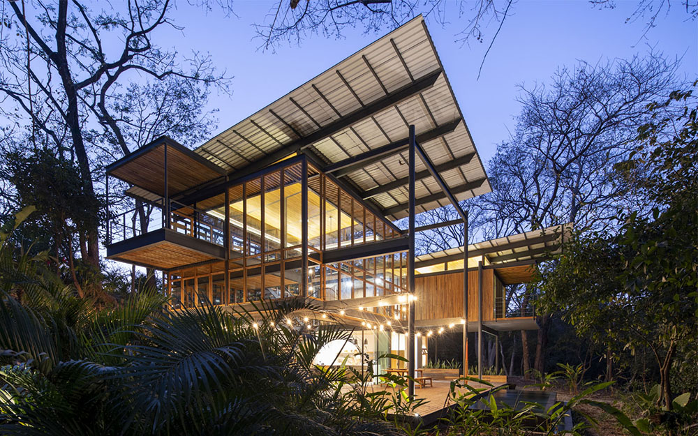 Konstrukcija kuće napravljena je od čelika po modelu svojevrsnog tropskog atrijuma u središtu džungle. „Studio Saxe” je autor projekta i odgovorio je vrlo domišljatim i duhovitim rešenjem na zahtev investitora – napravio je stan u šumi u koji se „ulazi iznutra”. Sama lokacija se nalazi na padini koja se spušta u impresivan potok. Autori su se odlučili da stvore veliki prostor trostruke visine kako bi moglo da se vidi nebo sa samog dna džungle i da se doživi svako drvo koje okružuje kuću. Po svom obimu prostor je u najvećem delu otvoren – bilo zastakljen, bilo otvoren u pravom smislu. Ramovi, pregrade, praznine i brisoleji kojima je snabdevena „fasada” unose bogat sklop senki i prirodnu ventilaciju.