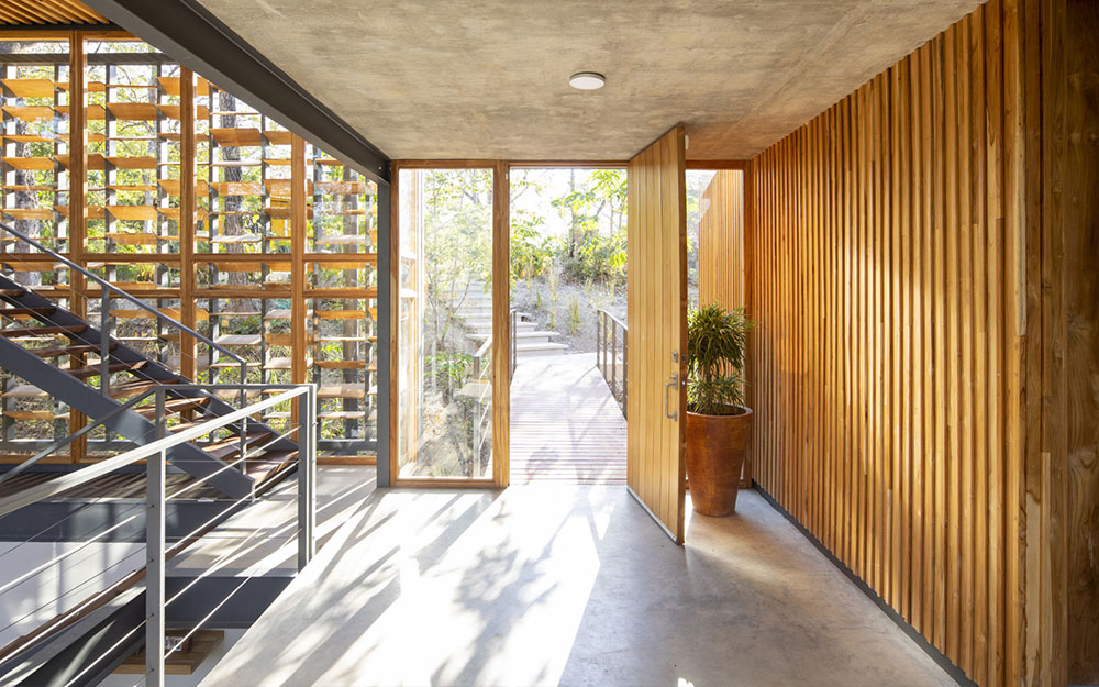 Projekat je zamišljen da se zaštiti od sunca u popodnevnim satima kroz zid snabdeven brisolejima koji filtriraju svetlost stvarajući impresivni efekat svetlosti. Ovaj efekat je zapravo svojevrsna mimikrija svetlosti koja prolazi kroz lišće, što je kao prirodna pojava prisutno na drugim stranama i delovima kuće. Pažljivo postavljeni otvori ispravne orijentacije omogućavaju da unakrsna ventilacija stvori udobnost tropske klime bez upotrebe klima uređaja. Svi materijali koji su odabrani imaju najmanji uticaj na gradilište tokom izgradnje, kao i na ekosistem u celini. Korišćenje solarne tople vode i solarne energije preovlađuje u funkcionisanju kuće, čime se drastično smanjuje emisija ugljenika.