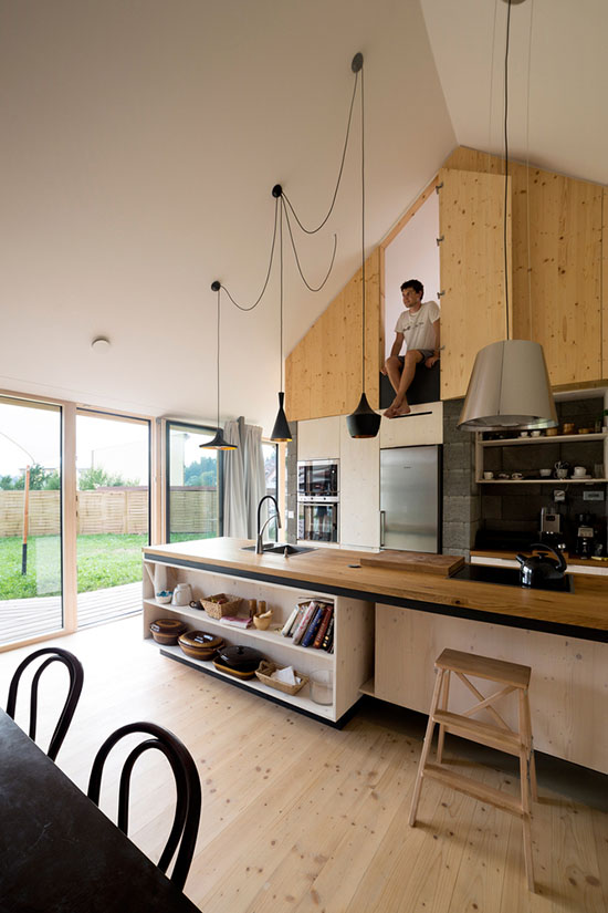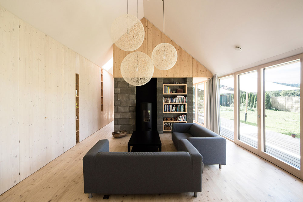 Drvo je odabrano kao glavni građevinski materijal i materijal za oblaganje. U slovačkoj tradicionalnoj ruralnoj arhitekturi postoji graditeljska forma „stodola”, koja je nekada služila kao štala, ali gubljenjem te funkcije nije prestala da postoji te se i danas sreće po dvorištima i baštama. Po pravilu, to je drvena građevina manjeg gabarita, sa dvoslivnim krovom. Upravo je ona poslužila kao inspiracija Bolešovom projektu - stilizovani oblik štale izvučen je duž severnog dela placa, prelomljen u sredini kako bi se maksimizovali solarni uslovi, i pokriven jednostavnim dvoslivnim krovom od lima. No, objekat je u celini savremenog stilskog izraza, kako zbog materijalizacije i opšteg principa stilizacije, tako i zbog minimalističkog enterijera.