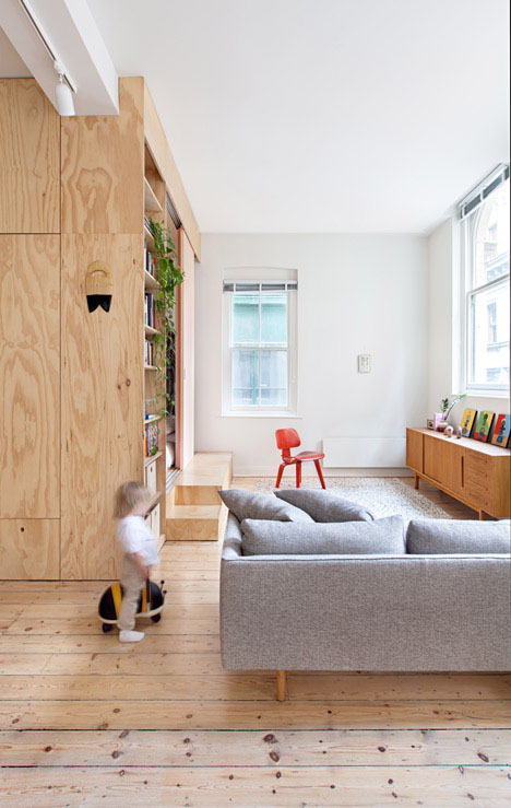 Dizajnerski studio Clare Cousins Architects iz Melburna je izradio projekat koji bi zadovoljio potrebe mlade porodice. Ideja je bila da se stan od 75 kvadratnih metara, koji ima jednu spavaću sobu, transformiše tako da se dobije još prostora za spavanje, a da se pritom sačuva postojeći životni prostor. Da bi ispunili zahteve dizajneri su u stan ubacili drvene kutije i mezanin platforme i tako dobili tri spavaće sobe.