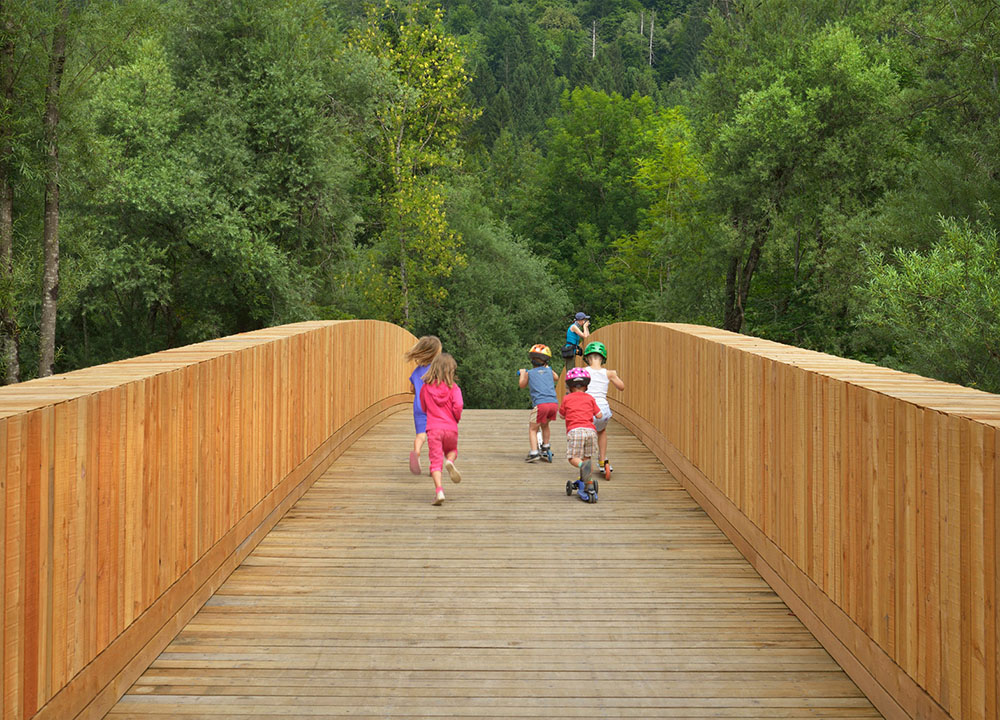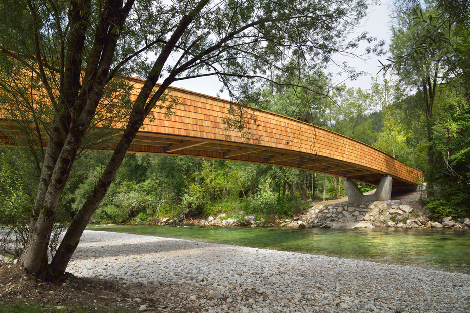 DANS Architects studio je koristio drvo da napravi most za pešake i bicikliste koji povezuje slovenačko selo sa obližnjim jezerom i planinama. Ovaj most se proteže u dužini od 54 metra preko reke Save i deo je nove biciklističke staze koja kreće iz sela Bohinjska, a završava se kod jezera Bohinj.