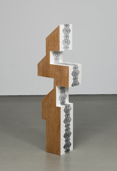 Drvo kao vajkadašnji materijal za umetničko izražavanje čoveka, nailazi na poseban odnos i respekt kod ove umetnice. Naime, ona je svesna da je to materijal široke, svakodnevne primene u ljudskom okruženju, i s obzirom da su čula naviknuta na njega tretira ga kao medij, odnosno „podlogu” koja je prirodna, familijarna, bez nepoznanica čovekovom duhu. Kada red dođe na zadavanje forme, reference ove umetnice su krajnje široke – ona se poziva na istoriju i drevne oklope i štitove, simboličke jezike kao što su hijeroglifi, morske zastave i tipografija, ili pak afričku umetnost. Način izražavanja je apstraktan, krajnje stilizovan, često sa geometrijskom vokacijom. Slikarska dorada skulptura je minimalistička i jednostavna, ponekada podseća na dečiji crtež, a ponekada ima složene dezene koji oponašaju dnevnu štampu, animal print odevnih kolekcija, najrazličitije kolorne teksture.