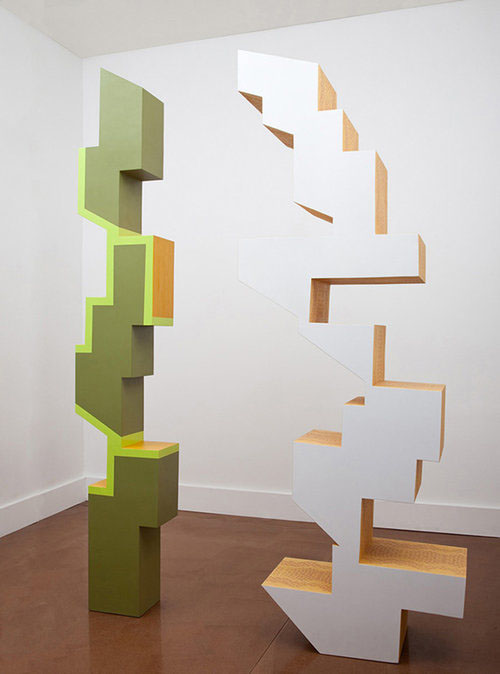 Njujorška umetnica kanadskog porekla, Rejčel Bič, koncipira svoj opus kao vajarski, a materijal kome se obraća je – drvo. Poznata i priznata u nacionalnim okvirima, ali i šire od njih, Bičova polazi od drveta kao materijala koji je najzahvalniji za ispoljavanje njenog jedinstvenog umetničkog kreda. Ona od drveta najpre formira oblike, potom od njih pravi kompozicije, i na kraju ih oslikava i finalno obrađuje. Tako, ona istovremeno razmišlja u slikarskom i u skulptoralnom smislu, brišući granice između ove dve umetnosti. Štaviše, njen rad se u pojedinim aspektima dodiruje i sa arhitekturom, posebno u smislu procesa tvorenja kompozicije, ili postavke odnosa elemenata u izgrađenom okruženju.