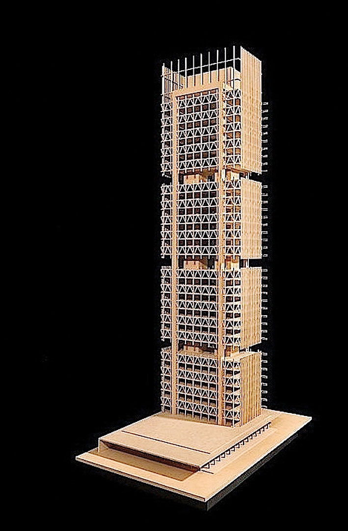 Osnova zgrade je ploča dimenzija 45 x 27,5 m sa centralnim jezgrom od betona. Četiri betonska stuba postavljena su po obodu tako da mogu da prihvate hibridne CREE panele dužine 9 metara. Tavanice su pravljene od kompozitnog materijala beton-drvo koji se oslanja na elastičnost drveta i izdržljivost betona na pritisak. Dobijeni materijal je veoma dobar i što se tiče nosivosti, ali i što se tiče izolacije i akustičnosti. Zgrada je mnogo lakša od klasičnog betonsko-čeličnog objekta tih dimenzija, što je izuzetno značajno i zbog njenih seizmičkih svojstava, a ekološki uticaj objekta na okolinu je takođe mnogostruko manji no klasični pandan. Na kraju, drveno-betonski paneli su montažno-demontažnog karaktera, što znači da veoma lako i bezbolno podnose promene namene ili funkcionalne organizacije prostora.