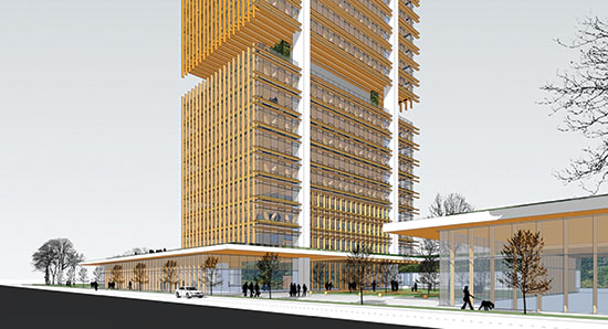 Projektant, CEI Architecture, zamislio je ovaj soliter kao objekat naprednog, futurističkog dizajna, koji u sebi inkorporira principe ekološke održivosti, vizuelne ikoničnosti, bespogovorne funkcionalnosti i adaptibilnosti, ali i opšteg utiska topline. Urbana građevina, namenjena u poslovne i komercijalne svrhe, u svojoj arhitekturi preferira drvo kao materijal, i to kao na eksterijeru, tako i u enterijeru. Ova činjenica direktno je povezana sa korisnicima u aspektu efekta smanjenja stresa i očuvanja njihovog zdravlja, kako zbog već poznatog fenomena biofilije – instinktivne povezanosi i afiniteta čoveka prema prirodnim materijalima, tako i zbog rezultata nedavno objavljene studije Univerziteta – British Columbia” pod nazivom “Drvo i čovekovo zdravlje”.