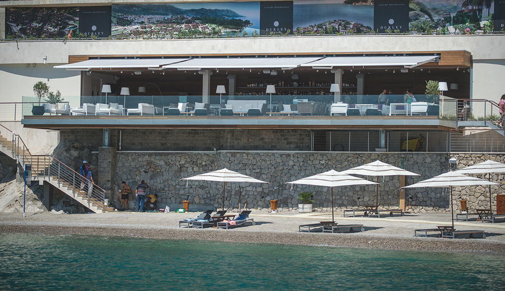 Restoran Dukley koncipiran je kao luksuzni plažni ugostiteljski prostor koji je smešten tik uz obalu Budvanske rivijere. Od nekadašnjeg prostora koji je trebalo da bude parking, investitor je zahtevao elitni objekat koji će biti u prisnom dosluhu sa prirodom, minimalističke koncepcije i sa najboljim mogućim iskorišćenjem lokacije. Autor, beogradski arhitekta Đorđe Gec, na čelu biroa Fluid arhitektura, dao je na ove zahteve odgovor koji je krajnje specifičan, ali je u isto vreme suština njegove arhitektonske vizije. Fluidan, tečan prostor restorana briše granice između enterijera i eksterijera, prostor se vizuelno čini mnogo veći i kompleksniji no što u realnosti zapravo jeste, a potcrtane su i karakteristike kakve su metamofrobilnost i adaptibilnost prostora, kao i pokretljivost fasade. Arhitektonski koncept baziran je na povećanju prostora uz pomoć uvođenja isturene konzolne terase, koja je u takvom perspektivnom odnosu sa ostatkom konsktrukcije da se iz daljine, sa mora, čini da prostor ne izlazi iz dominantne vertikalne ravni kompleksa. Staklena klizna fasada omogućava da se prostor restorana zaštiti od loših klimatskih prilika. Konstrukcija objekta zasnovana je na pocinkovanom limu (koji odoleva vlazi i procesu rđanja), a nameštaj je pažljivo birane aluminijumske konstrukcije.