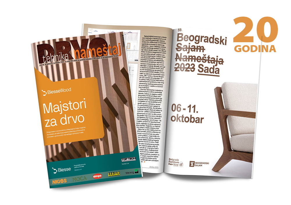 Praktično, godišnje imamo šest izdanja i uvek potenciramo da je naš cilj da učestvujemo u realizaciji ciljeva naših komitenata. Zato je prilika da se zahvalimo velikom broju naših komitenata: preduzeća, menadžera i vlasnika firmi iz naše zemlje i okruženja koji su imali i još uvek imaju interes i poverenje da svoj program rada predstave široj javnosti kroz naš časopis. Zahvalni smo svima koji su sve ove godine bili uz nas, a posebno se zahvaljujemo velikom broju autora koji su svojim stručnim tekstovima, pisanim na popularan način, naš časopis primakli široj čitalačkoj publici ne umanjujući stručni i edukativni karakter naših novina, a istovremeno podržavajući našu revijalnu orijentaciju. Ovo je, takođe, prilika da pozovemo na saradnju sve privrednike i stručnjake koji se bave preradom drveta, proizvodnjom nameštaja, šumarstvom i graditeljstvom, kao i firme koje svoj program rada zasnivaju na saradnji sa pomenutim delatnostima. Naš cilj je da i ubuduće izdajemo časopis koji će podsticati privrednu aktivnost svih kojima je drvo u sferi profesionalnog angažovanja ili ličnog interesovanja.