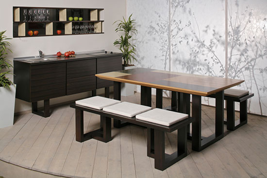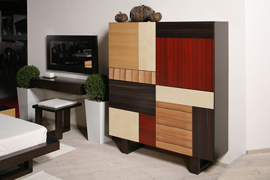 Ono što pleni u ovoj postavci jeste tretiranje čitavog štanda nasuprot uobičajenom načinu izlaganja. Autorski tim koji čine dipl.inž.arh. Slađana Lukić i dizajner nameštaja Snežana Vilotijević objasnile su svoj pristup: - Cilj nam je pre svega bio da potencijalnim investitorima prikažemo naše mogućnosti. Ne samo po pitanju perfektnog izvođenja i kvaliteta, već i inovativnosti u pristupu projektovanju. Sreća svakog projektanta je da se nađe u situaciji koja se nama pružila. Direktori firme shvatali su važnost prezentacije i uz punu podršku nam dali odrešene ruke da iskažemo sav svoj talenat kroz ovako skup projekat. Iz takve saradnje neminovno poizilaze veliki rezultati. U ovom enterijeru korišćena je kombinacija masiva i egzotičnih furnira različitih boja i dezena. Težnja je bila napraviti funkcionalni prostor u kome bi se korisnik osećao opuštenim i bliskim prirodi, jer to je ono što u današnje vreme nedostaje modernom čoveku. Ono što je još jedna razlika između nas i ostalih izlagača jeste da smo uz nameštaj do detalja osmišljavale i štand. I tu smo koristile prirodne materijale poput drveta, kamena, granja, trave… Igrale smo se svetlom i senkom, različitim teksturama i bojama. Bili smo iznenađeni reakcijom publike sajma i stručne javnosti. Interesovanje je bilo ogomno.