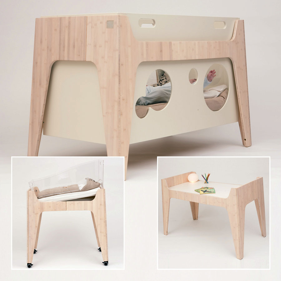 Dispozicija nameštaja i broj elemenata uslovljeni su objektivnim potrebama deteta i roditelja. Prema tome se određuje broj elemenata u sobi – krevetac, komoda/sto za presvlačenje i odlaganje bebi kozmetike, ormarić za stvari i mesto-fotelja za hranjenje. Nameštaj bi trebalo pozicionirati tako da se krevecu jednostavno i nesmetano prilazi. Praktičan položaj omogućava prilaz sa svih strana, ili sa tri - kada je uzglavlje naslonjeno na zid. Roditeljima je tako olakšan pristup detetu, dok otvorena vizura bebu podstiče na razgledanje. Akomodacija oka je vrlo bitan faktor koji utiče na opažanje i koncentraciju. Ukoliko gabarit prostorije ili pozicija vrata i zidova onemogućavaju takvu poziciju, krevetac se najčešće prislanja bočnom stranom uz zid. Izbegava se smeštanje direktno ispod prozora, iza vrata ili uz radijator. Uzglavlje bi trebalo pozicionirati tako da dete vidi onog ko ulazi u sobu. Bez otvorene preglednosti, deca postaju nervozna i nezadovoljna. Prostor sobe bi trebalo da bude prohodan, a nameštaj da ne zaklanja uglove bebine vizure. Izbor materijala je najbitnija stavka. Prednost imaju drvene površine premazane zaštitnom bojom i uljima koja nisu toksična, poput kolevki od punog drveta sa završnim eko premazom. Ne preporučuje se nameštaj sačinjen od univera koji zbog hemijskog sastava materijala može biti štetan za zdravlje. Rešetkasta ili segmentno otvorena struktura stranica kreveca po funkcionalnosti prednjači u odnosu na zatvorene, panelne strane. Deca vole da razgledaju i doživljavaju stvari oko sebe.