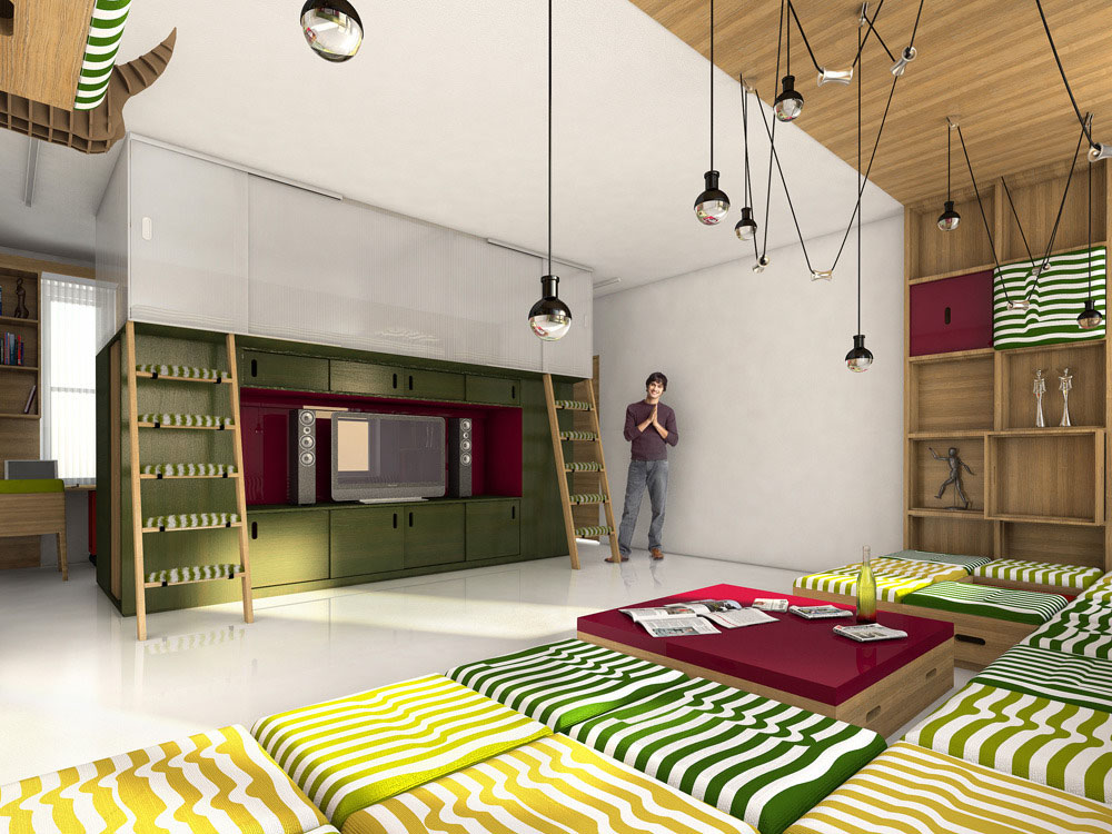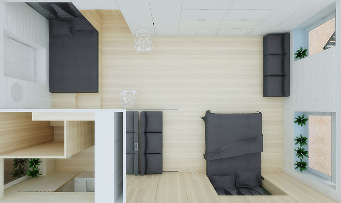 Podne nivelacije su dobra rešenja za odvajanje zona. Podesto plafoni i stepenici mogu se iskoristiti za odlaganje stvari.
