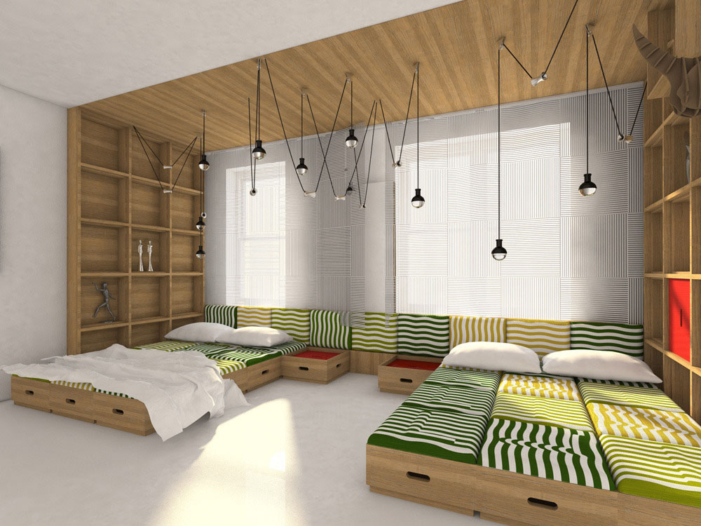 Kombinovanjem elemenata modularnog bloka dobija se krevet, deo za ručavanje, a ujedno su i mesto za odlaganje