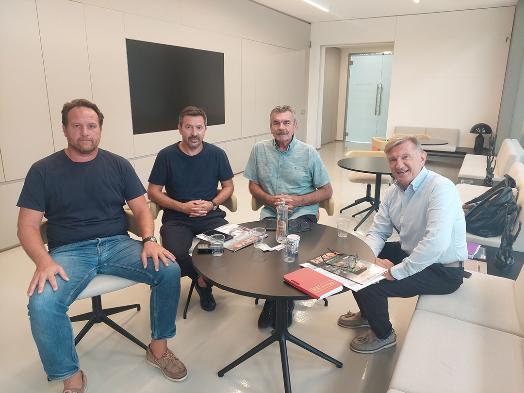 Razgovor u Kompaniji BACCI: generalni direktor Giuseppe Bacci, njegov mlađi brat, direktor prodaje Paolo Bacci, vlasnik časopisa Drvotehnika Dragojlo Blagojević i Željko Studen