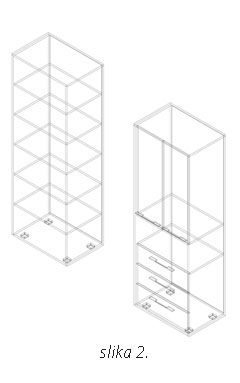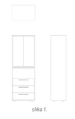 · Nacrt shematskog prikaza elemenata – za svaki pojedini komad nameštaja moguće je odabrati crtež koji sadrži shematski prikaz u sve tri projekcije i perspektivi. Osim shematskog prikaza na crtežu su prikazane sve pozicije elemenata sa pripadajućim nazivima, merama, količinama, načinom postavljanja kant traka i eventualno posebnim kant trakama.