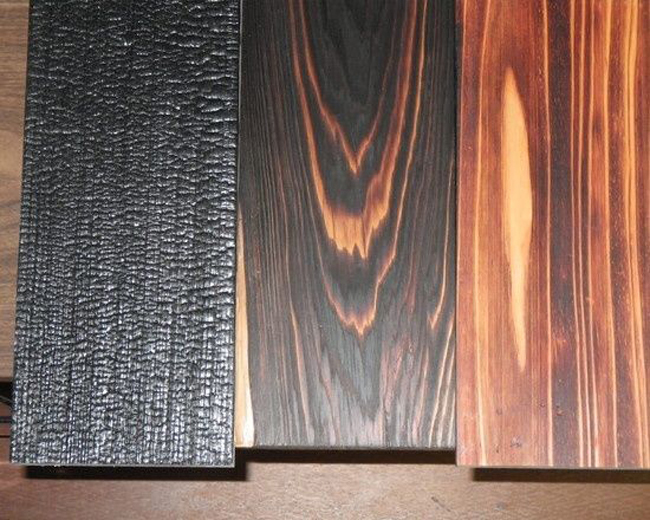 Splavovi, koji se u tim krajevima najčešće koriste, su se teško nabavljali dok je potražnja stalno rasla. Tako da su se Japanci okrenuli drugom načinu zaštite od vederinga, kako bi se postigla odgovarajuća izdržljivost i estetika. Vatra je u ovom slučaju obezbedila jednu vrstu konzervansa, kao i jedinstvenu umetničku dimenziju u japanskim kućama i radionicama.