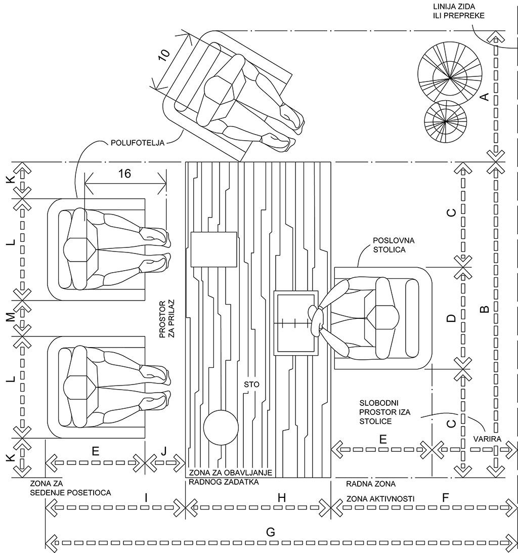 Crtež 3. Osnovno mesto za rad i sedenje posetioca