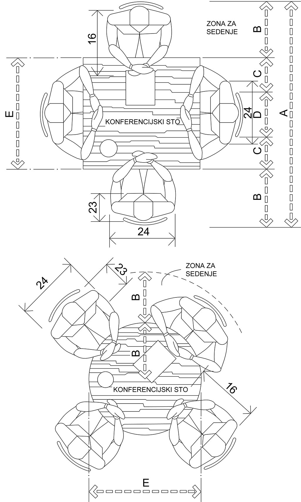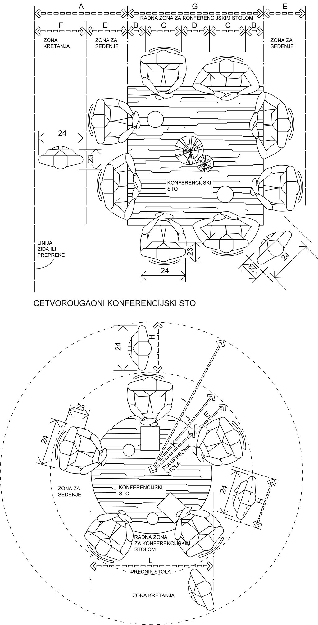 Crtež 6. Četvorougaoni i okrugli konferencijski sto