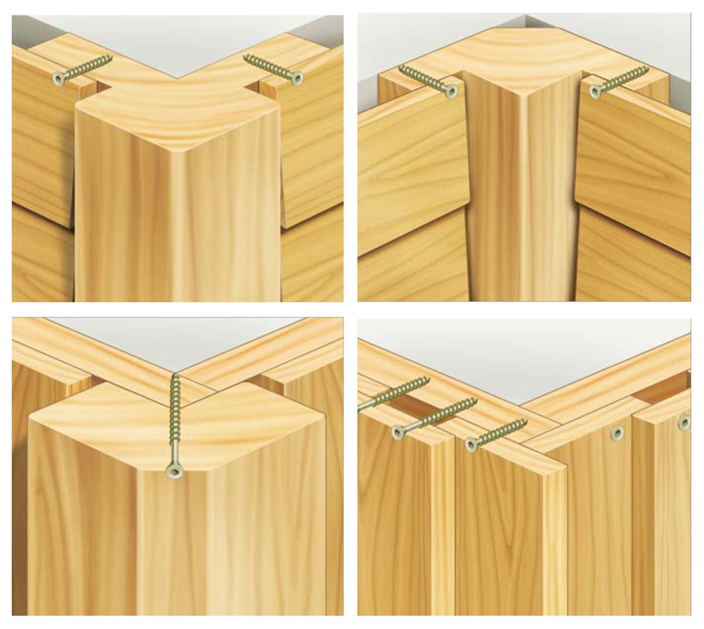 Postoje mnogobrojni sistemi za postavljanje rezane drvene građe na fasadi - daske na pero i žljeb i daske sa polužljebovima, sistem sa preklopnom lajsnom ili kominovanje ploča i punog drveta, koje se mogu postavljati horizontalno, vertikalno ili pod uglom. Adekvatan preklop je neophodan da bi dozvolio utezanje, ali preveliki preklop može da napravi problem kod ukucavanja eksera. Ako se ekseri ukucaju previše daleko od donje ivice gornje daske, postoji tendencija ka koritanju. Koritanje može da bude ozbiljan problem kod širokih tangencijalnih dasaka. Fasadu treba postavitii sa razmakom između dodirujućih dasaka da bi se dozvolilo bubrenje i sprečilo kapilarno upijanje vlage. Sve poprečne preseke bi trebalo tretirati vodoodbojnim zaštitnim sredstvom, kao i zadnje strane dasaka. Fasada od punog drveta treba da je ukucana na takav način da su daske slobodne da se utežu i bubre i tako smanji napon koji se razvija na ekserima koji može da uzrokuje pucanje i naprsline.