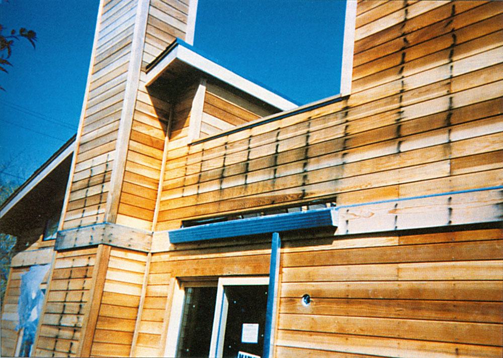 Jedan od najvažnijih elemenata u zaštiti drvenih fasadnih obloga je široka streha, kao i prepuštene gornje etaže na objektu koje obezbeđuju određenu količinu zaštite od sunca i kiše, posebno gornjim delovima objekta. Limene opšivke po obodu krova, u krovnim uvalama, spojevima krova i zida, duž krovnih prozora, na spojevima panelnih proizvoda i oko dimnjaka, kao i okapnice iznad prozora i vrata, pomažu da se spreči prodiranje vode. Dobro održavani oluci i olučne vertikale mogu da spreče prelivanje i kvašenje streha i prskanje po fasadi blizu nivoa terena. Adekvatna izolacija i ventilacija tavana i prostora ispod kuće (kod kuća koje nemaju podrum) pomažu da se smanji kondenzacija vlage i visok sadržaj vlage u ostatku objekta. Veoma vlažne prostorije, kao što su kupatila i kuhinje, treba ventilirati da bi se eliminisala vlaga a instalacije treba dobro održavati. Kod kuća koje nemaju podrum, kritičan faktor za kontrolisanje vlage su razdvajanje terena i nosača poda i dreniranje vode od objekta. Drvo na fasadi ne sme da bude u kontaktu sa zemljom, tako da oblogu, podlogu i noseće grede treba postaviti bar 20 cm iznad spoljne linije terena, osim ako su tretirani zaštitnim sredstvom tretmanom pod pritiskom.
