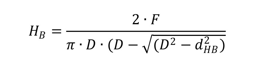 Gde je: HB – Tvrdoća drveta po Brinell-u (N/mm2); F – sila – 1000 N; D – prečnik kuglice od 10 mm; dHB – izračunat prečnik otiska u mm.