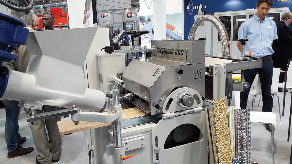 Za dobijanje složenijih reljefa na površini drveta predstavljene su mašine za vrelo utiskivanje reljefnim valjkom („embossing“ tehnika) i za utiskivanje drvne pulpe (npr. kod lajsni ramova za slike) (slika 2).