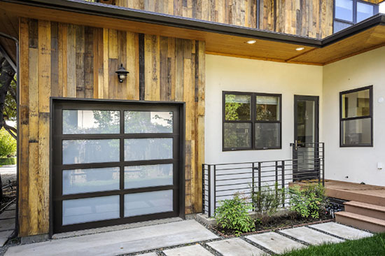 Spoljašnjost je obložena recikliranim drvetom iz Jute, od kojeg je bio izgrađen ambar, zajedno sa pločama koje su izrađene od štuko maltera. Veranda je prekrivena velikim zelenim krovom, dok je krov koji se nalazi iznad garaže konstruisan tako da sakuplja kišnicu koja se koristi za navodnjavanje starog hrasta u dvorištu. Staze koje se nalaze oko kuće su napravljene tako da mogu da upiju veliku količinu atmosferskih padavina za vreme jakih kiša.