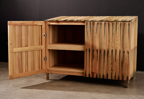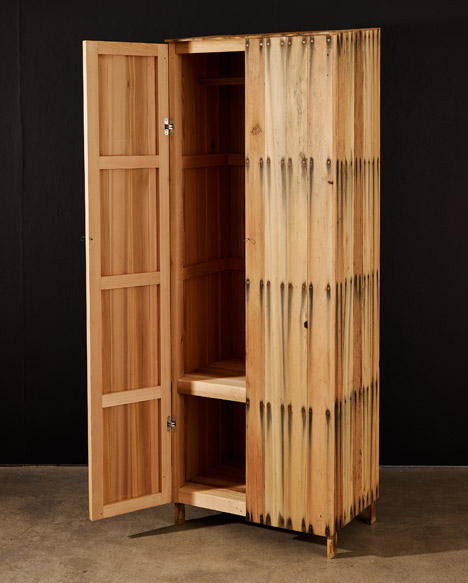 Drvene ormare koji izgledaju kao da krvare dizajnirao je Peter Marigold. Da bi napravio ovu jedinstvenu kolekciju on je koristio kedrove lajsne koje su zacrnjene na određenim mestima.