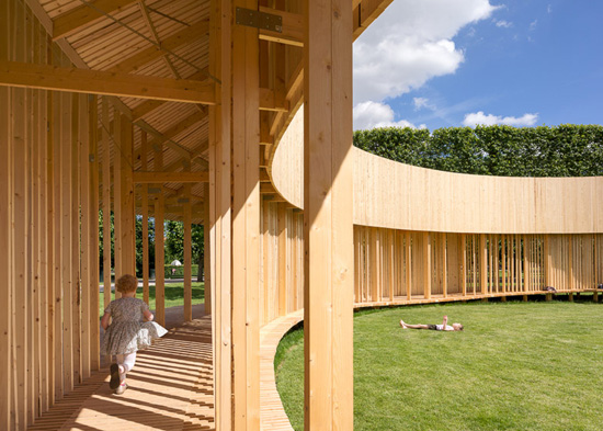 „Kada ste unutar paviljona i dalje možete videti obrise vrta napolju, ali u isto vreme ste inkapsulirani u izuzetnom prostoru,‟ kažu arhitekte i ističu: „Drveće u bašti kreira ritam sa poetskom svetlošću koja prolazi kroz drvenu konstrukciju paviljona, a miris drveta, trave i čistog vazduha ujedinjuju se u posebno prostorno iskustvo kao nijedno do sad.