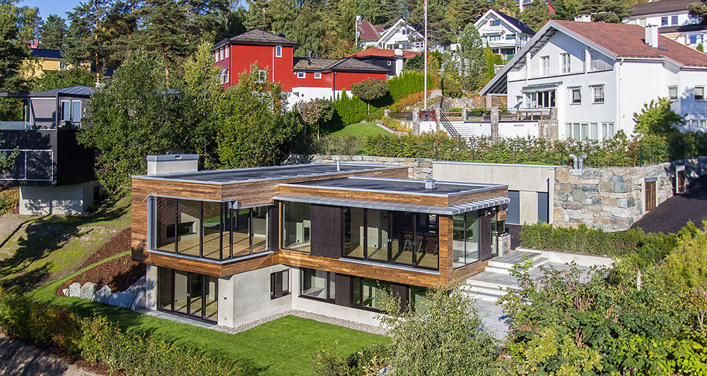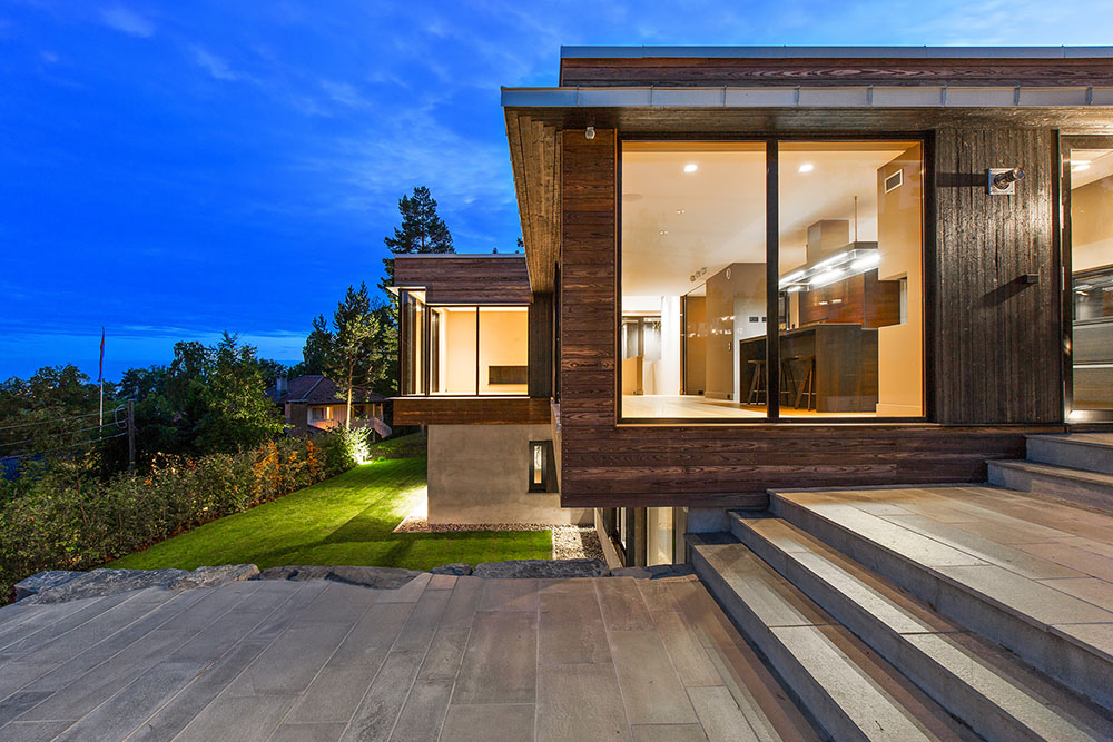 Horizontalna fasadna obloga Kebony na ovoj vili predstavlja dominantan materijal fasade. Proizvedena je u Oslu korišćenjem održivo gajenog drveta koje je, nakon seče, injektirano sa nehemijskim proizvodima na bio-bazi, a potom tretirano toplotom i pritiskom. Na taj način stvoren je veoma izdržljiv fasadni materijal koji ne zahteva održavanje tokom vremena.