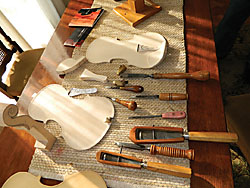 – Po nekima lak je presudan za zvuk violine, ali mi ne smatramo tako. Violina bez laka ima jednako kvaitetan zvuk kao i lakirana violina. Primarna funkcija laka je da zaštiti violinu. Kao tek rođeno dete, dok je bez odeće, njegov prvi plač je njegov glas, kasnije kada ga ušuškamo, to je već nešto drugo. Tako je i sa violinom. Bela, nelakirana violina ima fenomenalan zvuk, rekla nam je Biljana Popović, i dodala da je rad na drvenim instrumentima drugačiji i specifičan po tome što kada pravimo instrument mi ne možemo da znamo kako će on na kraju da izgleda, od samog početka drvo mora da se osluškuje, mora da se pretpostavi kako će instrument na kraju da zvuči.