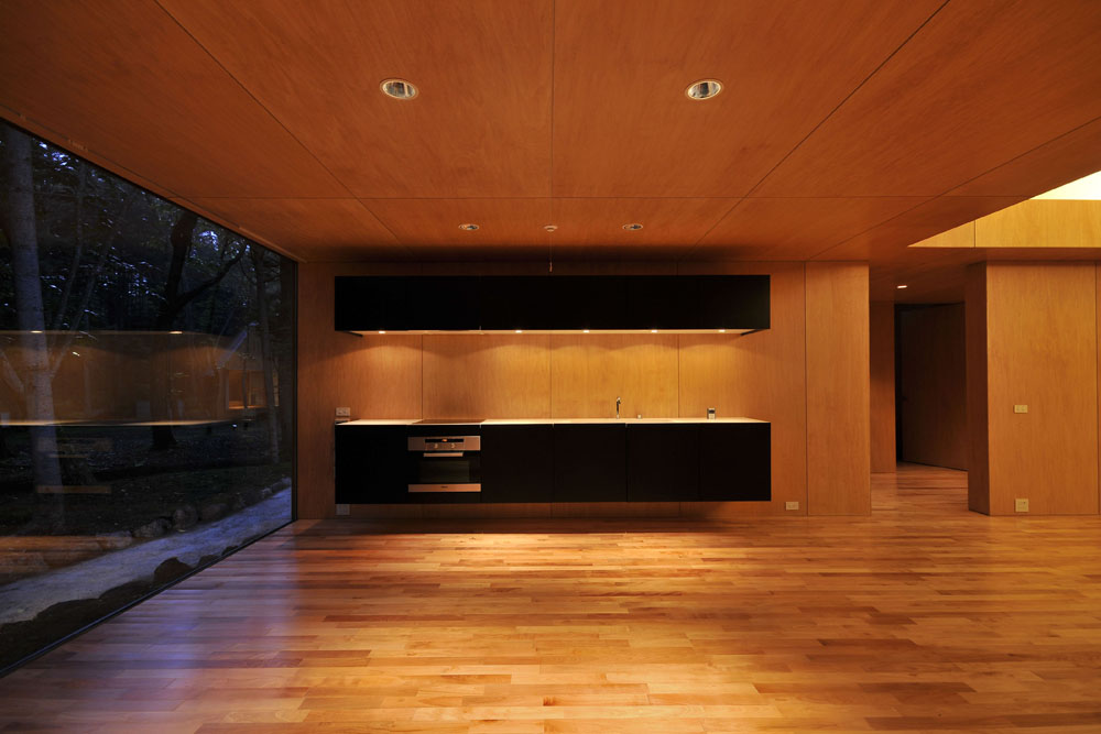 Fleksibilnost prostora počiva na sistemu klizećih i rotirajućih zidova, što omogućava najrazličitije kombinacije u organizaciji i funkcionalnosti prostora. Tako, na primer, spavaće sobe mogu biti formirane kao jedna, dve, tri ili četiri nezavisne jedinice. Pored ovog, u projektnom procesu korišćeni su i drugi fundamenti drevnog japanskog graditeljstva, kao što su akcentujuće dejstvo „efekta ugla“ u enterijeru, jasan sistem kontrolisanja vizura kako unutrašnjih tako o onih prema spolja, uvođenje slobodnih, atrijumskih volumena ispred svake prostorije doma, snažno prožimanje unutrašnjih i spoljašnjih prostora, organizacija objekta kao prizemne, jednoetažne forme. U poslednjem elementu ova kuća korespondira i sa poznatim fenomenom „prerijske kuće“ i „organske arhitekture“ Frenka Lojda Rajta sa početka proteklog veka, koji anticipira radost života, neprikosnovenu udobnost i harmoniju čoveka sa prorodom. Dnevni prostor uređen je kao najprostranija celina kuće. Pozicioniranjem kamina kao žižnog, skulptorski tretiranog elementa, načinom povezanosti sa svim ostalim odajama i višesmernim rasprostiranjem vizura prema spoljašnjosti, usvaja se princip sakralnosti porodičnog života. I zaista, atmosfera kojim odiše prostor je svedena i ozbiljna, gotovo svečana. Harmonija i dosluh između čoveka i prirode dati su i kao svojevrsna antiteza zaglušujućem urbanom životu sa tokijskih ulica.