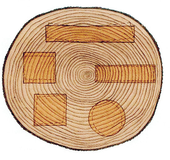 Način slaganja na slici 6 je model. Naravno da se on ne može primeniti u masovnoj industrijskoj proizvodnji, gde se građa nabavlja od različitih snabdevača, i gde često cena nameštaja od masivnog drveta ne može da podnese pristup koji je važio kada su se pojedini komadi nameštaja izrađivali po principu: koliko je nameštaj težak – toliko srebra. Model treba samo da ukaže na još jednu od stvari o kojoj treba voditi računa prikom spajanja drveta.
