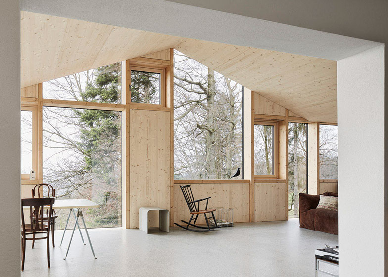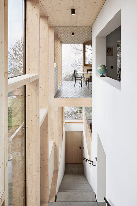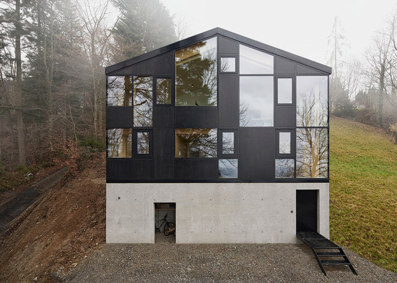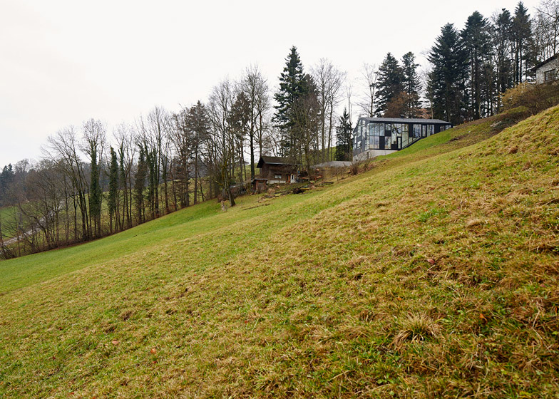 Arhitekta Jochen Specht je udvostručio veličinu kuće koja je izgrađena 1960-ih u ruralnom delu Austrije. On je to postigao tako što je staru kuću obavio novom fasadom od tamnog drveta, betona i velikih staklenih površina. Kuća se nalazi na brdu iznad grada Dornbirna i pruža pogled na ušće Rajne u jezero Konstanca.