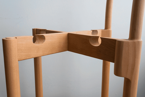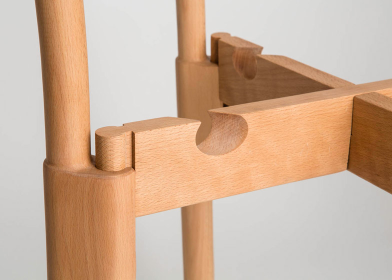 Kako se drvo prirodno širi i skuplja struktura vremenom postaje čvršća i tako nastaje stabilna forma PEG (Parts Excludeing Glue - Delovi bez lepka ) stolice.