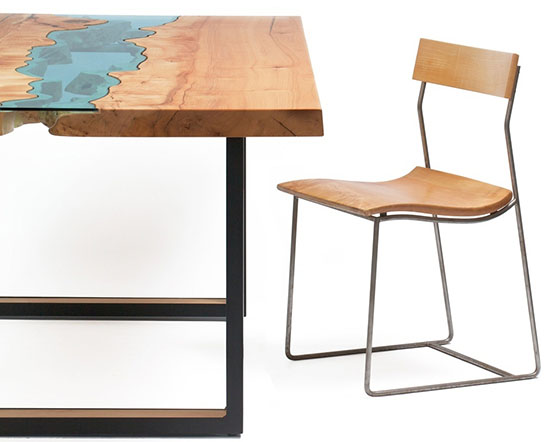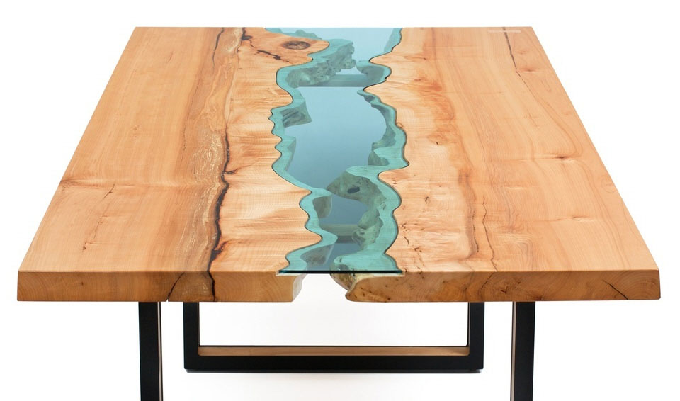 Greg je izradio stolove da podsećaju na topografske karte na kojima reka preseca prostranu ravnicu. Rezultat je spektakularan i daje utisak da se nalazite u balonu i da sa visine posmatrate reljef ispod vas.