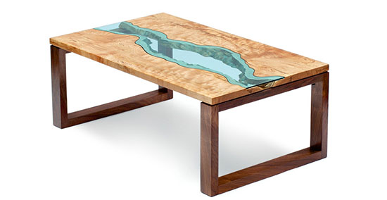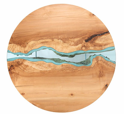 Svaki od stolova iz kolekcije je koristio isti koncept. Umetnik je birao odbačena stabla i od njih izrađivao polovine ploče za sto. Unutrašnju stranu je ostavljao neobrađenu i spajao dve ploče da bi dobio sto. Između te dve ploče umetao bi plavo staklo koje je sečeno tako da prati neobrađene ivice drveta. Kada se to postavi na nogare dobijate rečicu koja protiče kroz vašu dnevnu sobu.