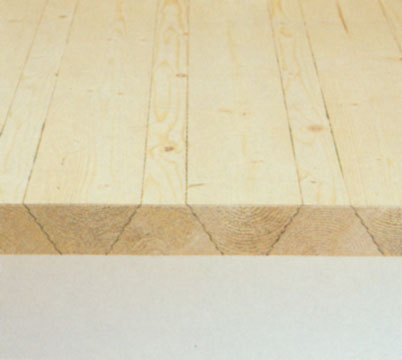 Lamele trouglastog poprečnog preseka se blanjaju sa svih strana. Da bi se olakšalo presovanje i postigla debljina ploče jedna od ivica lamele se blanja do određene širine, čime se dobija trapezni oblik lamele. Pritom je takođe važno voditi računa o orijentaciji godišnjih prstenova. Posle blanjanja nanosi se lepak na dve od četiri površine trouglastog profila i oni se postavljaju zajedno u ploču sa vertikalno orijentisanim godišnjim prstenovima.