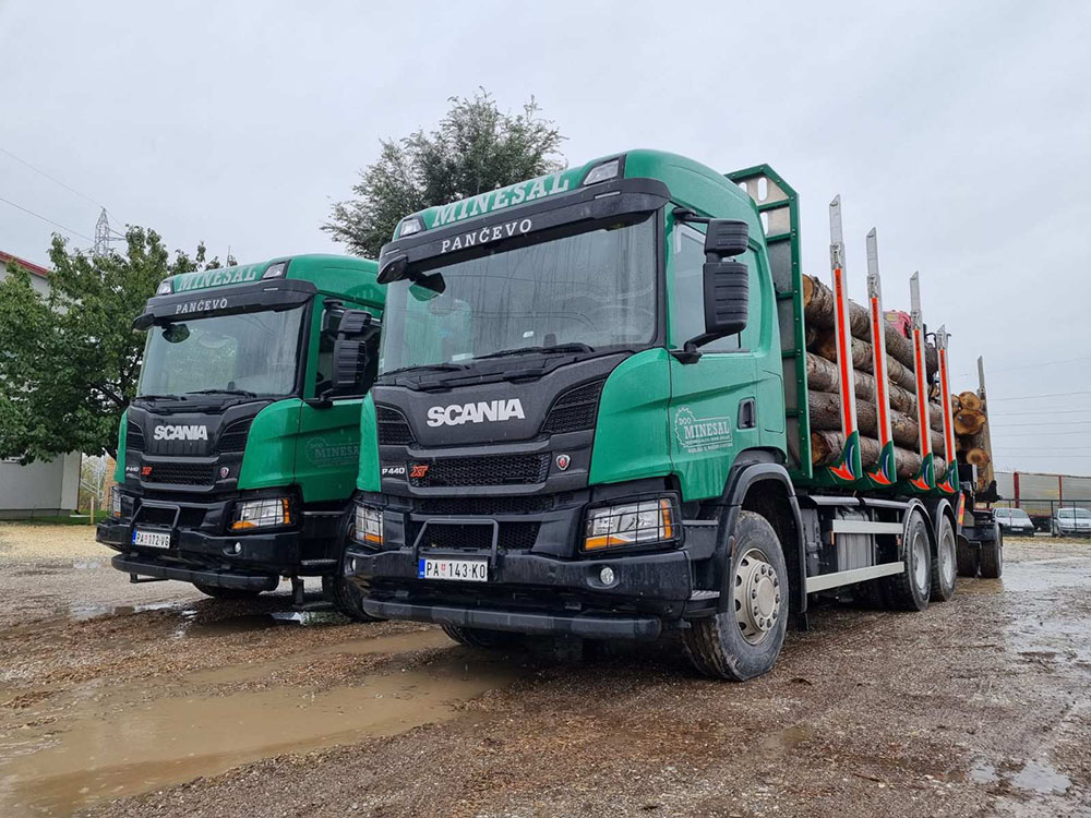 Inače trupce dovozimo svojim kamionima sa dizalicama, imamo ih tri, a imamo i dva šlepera za prevoz robe svuda po Srbiji. A što se tiče prevoza naših proizvoda za inostranstvo, koristimo uslugu prevoza. Naš vozni park je upotpunjen sa još dva kiper kamiona za prevoz različitog tereta. Naravno tu su viljuškari, utovarivači, bageri i dizalice za lakše funkcionisanje u proizvodnji.