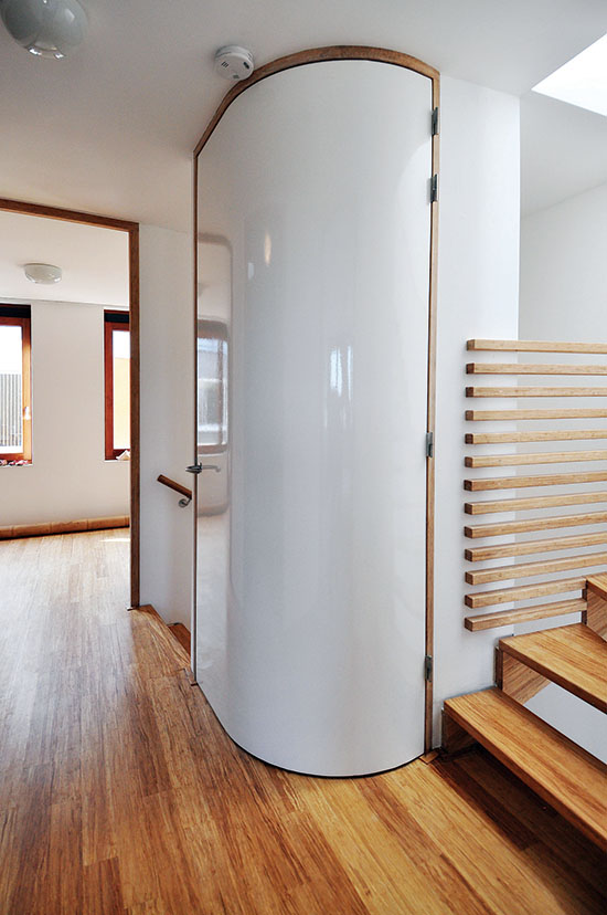 Projekat je osmišljen tako da je upotreba dnevne svetlosti od maksimalne koristi u konzumiranju prostora. Kako bi se obezbedilo unutrašnje osvetljenje prostora prirodnom svetlošću, arhitekta je izveo mali, vertikalni atrijum sa staklenim pregradama koje obezbeđuju dovoljnu količinu svetlosti od viših prema nižim spratovima i prizemlju objekta. Gde god je bilo moguće, zidovi ovog atrijuma postali su providni, sastavni delovi enterijera. I u unutrašnjosti objekta arhitekti su se u velikoj meri oslonili na drvo kao materijal u dizajnu. Korišćen je parket od bambusa, a od istog drveta izrađeni su i okviri prozora i vrata. Spoljašnji brodski podovi na terasama su izvedeni od kompresovanog bambusa koje je otporno na sve vremenske uslove.