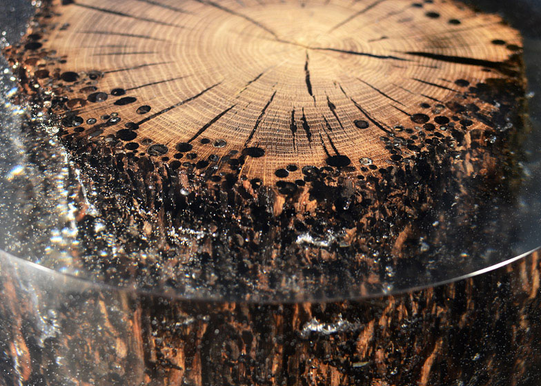 Ovi materijali su kombinovani sa smolom kako bi sačuvali svoje prirodne površine. Novi komadi su predstavljeni sa ciljem da se uhvate neobične atmosfere jedinstvenih mesta zamrzavanjem vremena pri kraju životnog ciklusa drveta, i na taj način se tom prirodnom materijalu daje novi život.