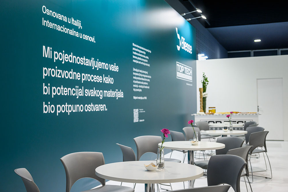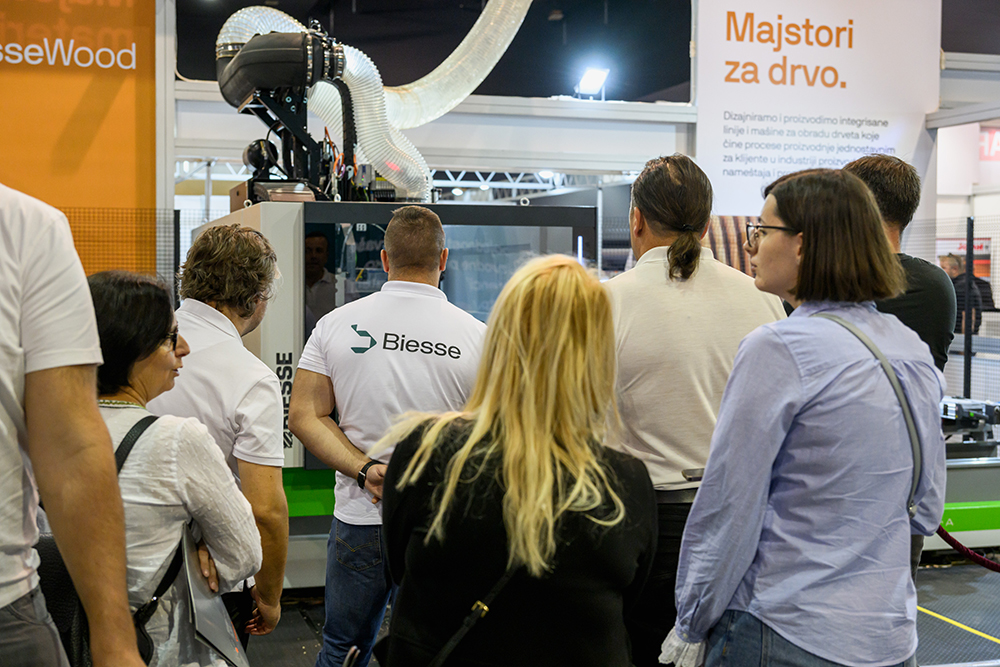 Po prvi put posetioce našeg štanda dočekao je novi BIESSE logo i vizuelni identitet. Nakon duže od 50 godina prisustva kompanije BIESSE na ovim prostorima, nije potrebno posebno isticati koliko je stari logo prepoznatljiv i prestižan. Taj znak postao je simbol pouzdanosti, inovacija i visoke tehnologije u drvnoj industriji. Verovatno će nam nedostajati na način na koji grb nekog sportskog kolektiva nedostaje svojim navijačima. Sa druge strane, nema napretka tamo gde je pogled okrenut ka prošlosti i mi kao kompanija, spremno dočekujemo promene unutar BIESSE grupe, iz kojih moramo dosta toga naučiti kako bismo još više podigli nivo efikasnosti i unapredili svoje poslovanje.