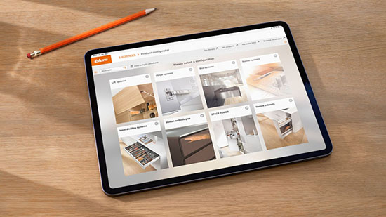 Konfigurator proizvoda vam pomaže da pronađete odgovarajuće okove za individualno planiranje nameštaja – potpuno bez instalacije softvera ili ažuriranja na PC računaru, tabletu ili pametnom telefonu.