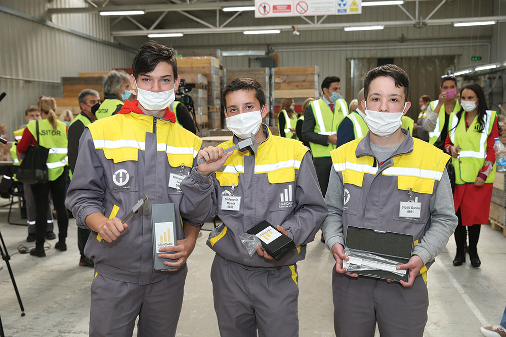 – Našim stipendistima je obezbeđeno sve što im po Zakonu o dualnom obrazovanju pripada, kao i naknada koja iznosi 70% od minimalne zarade. Kao direktor sam svima poslao poruku da dualno obrazovanje nije trošak već strateška investicija za budućnost, a mi kao tim i menadžment ćemo nagraditi one koji, kroz učenje uz rad, pokažu veću volju, trud i uspeh. Činjenica je da oni daju određeni doprinos firmi. Naravno, od njih se ne očekuje da ispunjavaju naše norme, ali oni nisu mimo proizvodnog procesa, mi za njih nismo napravili poseban pogon. Mi smo definisali sistem njihove edukacije i kretanja kroz proizvodni proces, uvek u paru, po dva učenika, uključena su u određene radne operacije i uvek sa ostalim radnicima, upravo zato da se osete kao deo tima. Naravno, naši radnici su ih lepo prihvatili, a kada smo odavno najavili kampanju za dualno obrazovanje, ljudi u firmi su to pozdravili jer su to shvatili kao našu sledeću razvojnu fazu... Mi sada imamo 400 zaposlenih ljudi koji imaju različite srednje škole ali su, za drvnu industriju nekvalifikovana radna snaga. Imaju razne struke: električari, medicinske sestre, bravari, tehničari, a imali smo ljude koji su sa završenim fakultetima radili na bansecima. Svi oni su kod nas prošli kroz dvonedeljnu obuku, a zatim obavljali normirane i ozbiljne poslove, da bi tokom vremena uznapredovali i postali poslovođe i šefovi proizvodnje. Zanimljivo je, napredovali smo i razvijali našu proizvodnju sa nekvalifikovanom radnom snagom – kaže direktor preduzeća Standard Furniture Serbia.