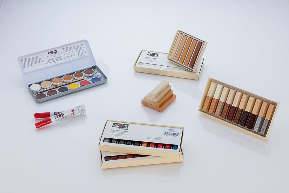 Da bi se olakšao odabir, odnosno naknadno modelovanje prave boje, voskovi kompanije Ostermann su takođe poređani u komplete usklađene u bojama. Na primer, kutije sa 5 ili 10 boja su dostupne za bele, sive ili crne površine, kao i za različite vrste drveta - od javora do trešnje - ili za svetle i tamne tonove drveta. Za profesionalnu narudžbinu, kompanija Ostermann isporučuje elektro topionik za tvrdi vosak i za meki vosak lopaticu za meki vosak.