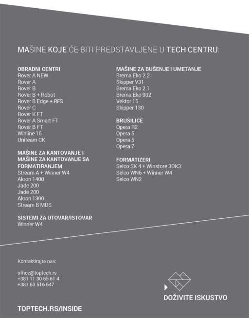 Inside Biesse je događaj koji je od suštinske važnosti za održavanje snažnog duha saradnje sa našim klijentima i kao potvrda, iz godine u godinu prepoznatljivog opredeljenja naše kompanije ka unapređenju tehnologije. Podrška koju neprekidno pružamo klijentima u svom korenu ima našu neprekidnu potragu za „novim“, tim inovativnim elementom koji može da utiče na rast i efikasnost kompanija u ovom sektoru.