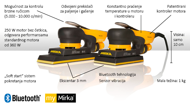 Opseg brzina alata je 5.000 – 10.000 o/min. Brzina rada se može menjati tokom operacije brušenja i nema uticaja na kvalitet obrađenih površina ili stabilnost rada alata. - BLUETOOTH TEHNOLOGIJA